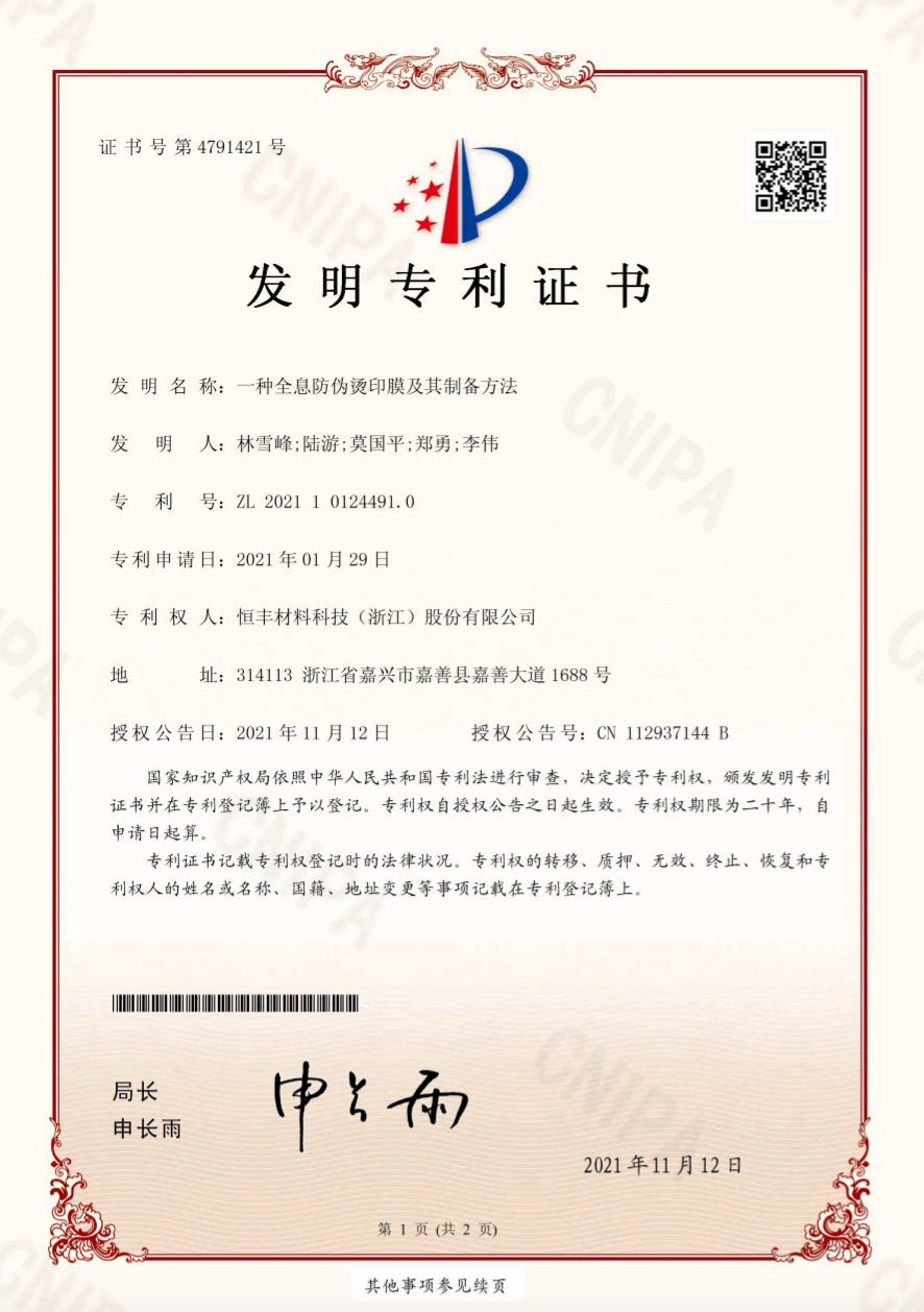 公司創立于2004年,是一家專注于生產、研發高科技環保型轉移新材料的國家高新技術企業。目前主導產品已形成:常規電化鋁熱燙印箔、全息鐳射類燙印箔、顏料箔、真空鍍鋁轉移紙(膜)四大系列,主要應用于:煙用接裝紙、煙標、酒標、禮盒、磁卡及部分防偽標簽等領域,業務已覆蓋國內二十多個省份、東南亞及歐美各國,市場處于穩步拓展階段。